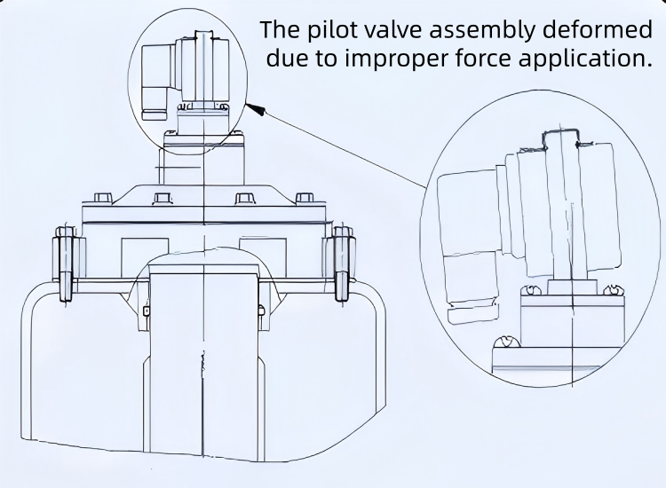 स्थापना पछि, वेल्ड स्प्याटर वा डायाफ्राममा उच्च-तापमान क्षतिलाई रोक्न एयर ट्याङ्कीहरू, जडान गरिएका फ्ल्याङ्गहरू, वा ब्लो पाइपहरूमा वेल्डिङ कार्यहरू निषेध गरिएको छ। सोलेनोइड भल्भ पाइलट एसेम्बलीमा हुने असरलाई क्षति हुनबाट रोक्नको लागि ढुवानी वा स्थापनाको समयमा सावधानीपूर्वक ह्यान्डल गर्नुहोस्, जसले स्पूल आस्तीनलाई विकृत गर्न सक्छ, चलिरहेको स्टेमलाई जाम गर्न र भल्भ सञ्चालनलाई रोक्न सक्छ।